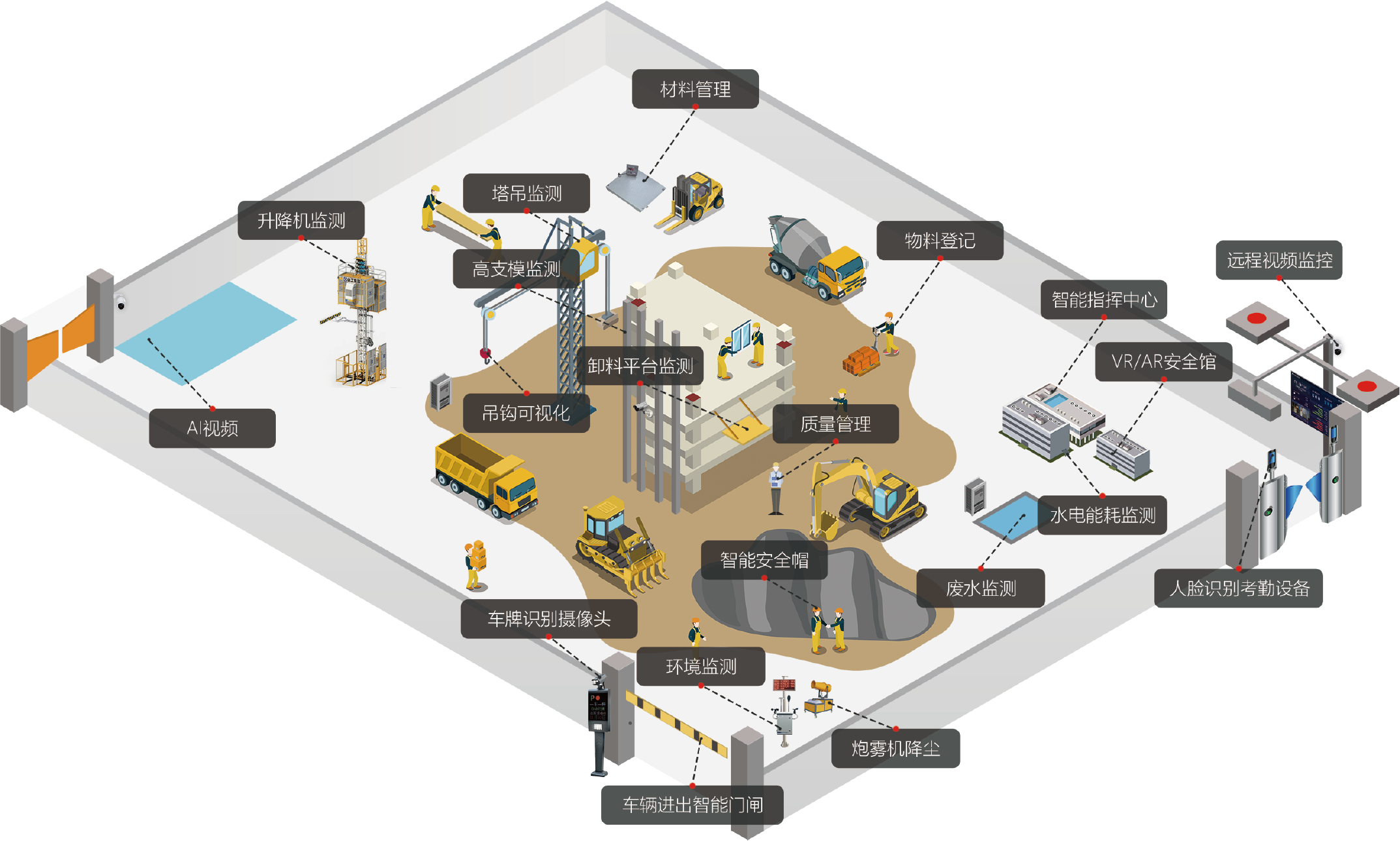 数据化实时监管:全面监管施工进度、人员考勤、现场环境、塔吊运行和现场作业场景;