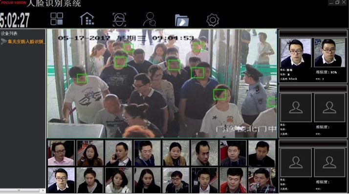 人脸识别设备采用深度学习算法,结合视频处理技术,统计人脸特征和属性,快速比对黑白名单。对院区工作人员不同区域进出通过人脸比对开门,无接触操作防止交叉感染;对大门出入口、门诊、候诊大厅等重点区域实施人脸卡口布控,识别惯偷、二次医闹、医托、号贩子、医药代表等可疑人员,提前预警。