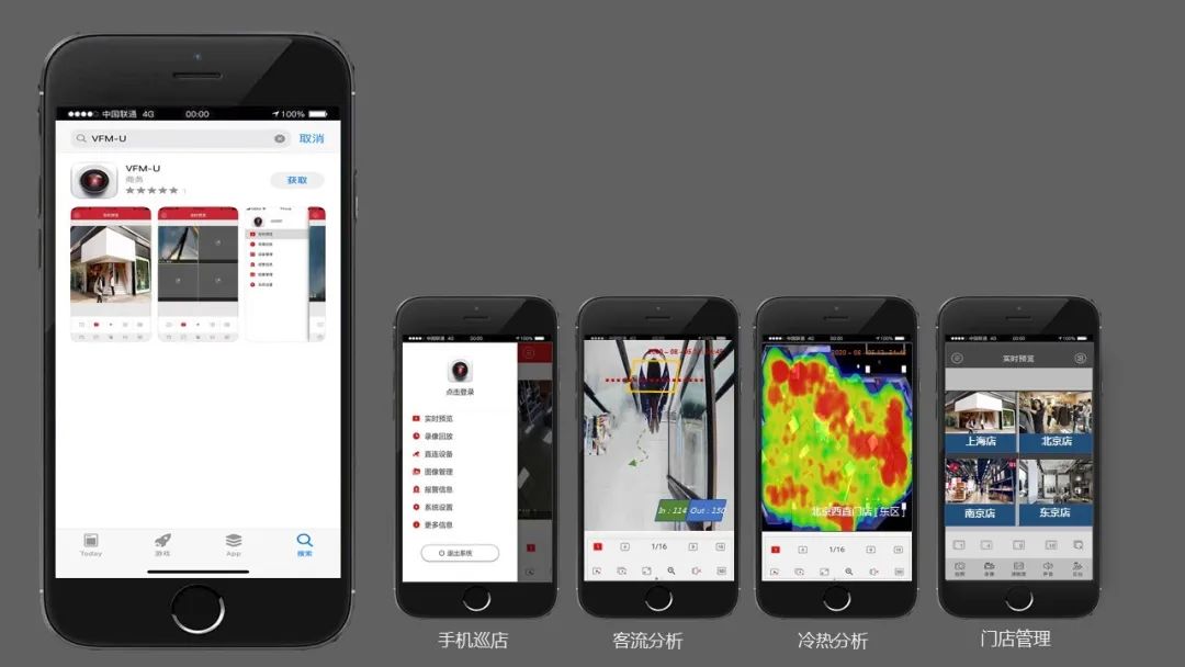 VFM 视频监控中心是永乐高ylg888888安防免费视频监控平台APG-AS300 和 定制视频监控平台VFS-B3000 中的移动端软件增强模块,该系统可与永乐高ylg888888安防品牌摄像机实现快速视频接入,实现手机移动端访问门店进行视频查看、全国分店集中管理,还可快速与永乐高ylg888888安防AI功能型摄像机实现快速对接,实现随地随地查看门店进出客流量等视频叠加数据,实时分析监测数据,可用于实时动态跟踪进出门店的顾客消费行为与偏爱,辅助了解实体门店内的消费行为, 辅助店铺精准营销及管理运营策略优化。