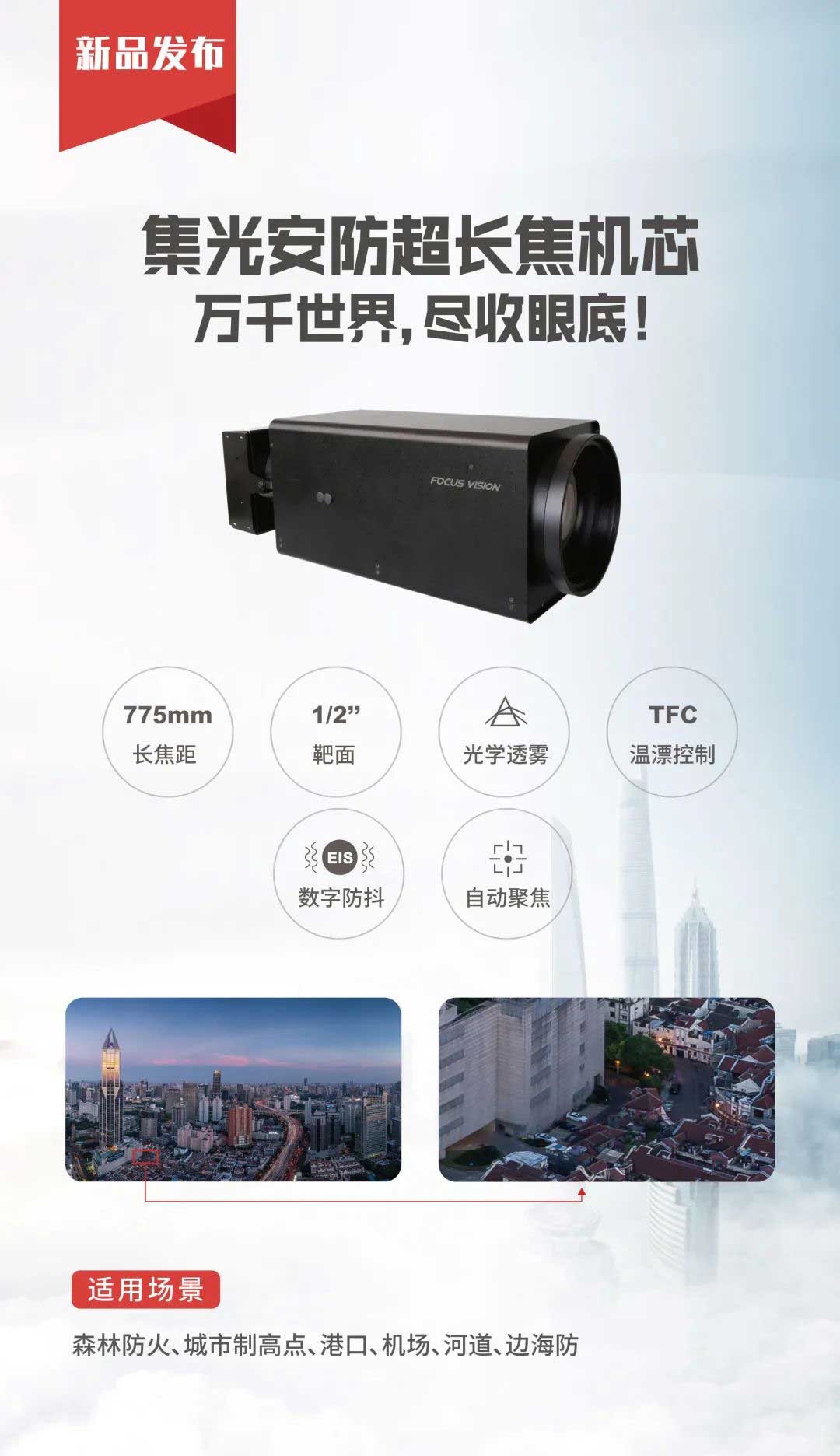 顺应安防监控市场数字化、网络化、高清化、智能化的发展趋势,永乐高ylg888888安防重磅推出大倍率长焦机芯,集成37倍光学变焦超高清可见光镜头,搭配SONY最新传感器,为森林防火、城市制高点、港口、机场、河道、边防、海防防控提供视频图像整体解决方案。